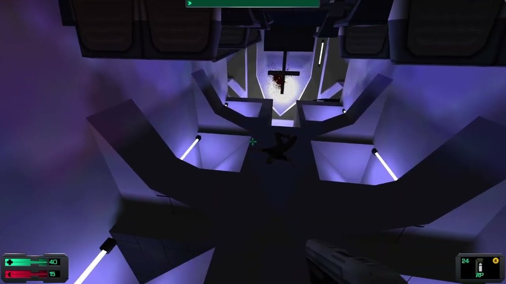 En System Shock 2 presenciamos algo bastante interesante. Tras invertir la gravedad en la Cubierta 2 del UNN Rickenbacker, lograremos llegar a una capilla futurista, iluminada con luz fría, y que ha sido puesta de cabeza. Por lo tanto, ahora la cruz se muestra invertida, simbolizando astutamente la naturaleza infernal de todo lo que rodea la nave.